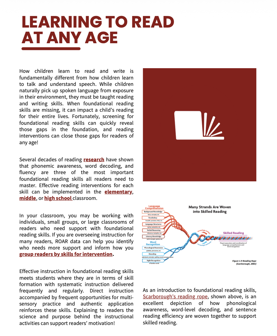 Rather than beginning with instructions, I first organized the materials around a mental model of reading development.